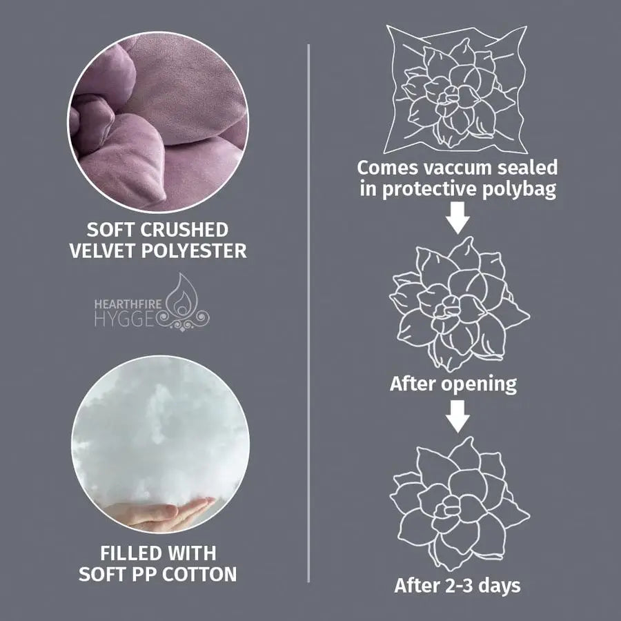 Meet the 17-inch Purple Cactus Flower Pillow—an oversized, hand-stitched decorative cushion crafted for plant lovers who want a playful, yet functional accent in bedrooms, living rooms, or nurseries. Its bold 3D cactus bloom brings whimsy and warmth to any space, while doubling as a comfortable prop for lounging.