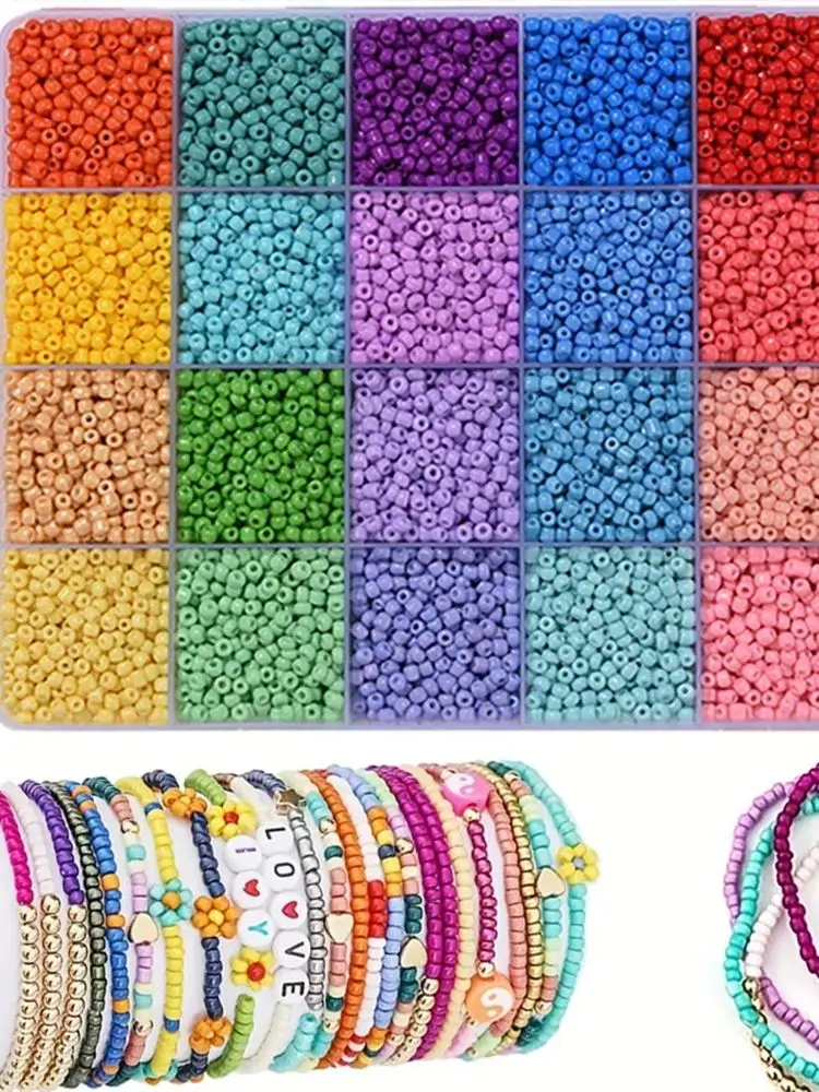 CN Glass Seed Beads 2400pcs 3mm Mixed Beads Jewelry Making DIY Craft Kit For Projects