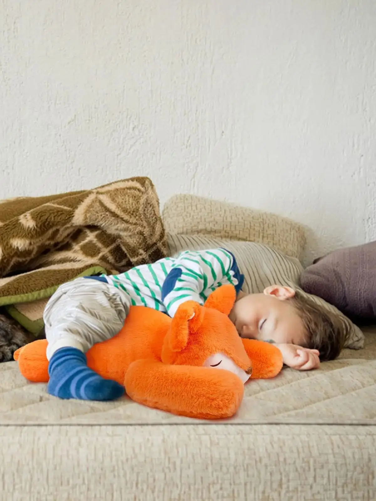 【Unevenly Distributed Weights】To provide the more realistic "hugging back" feeling, In addition to the weight added in abdomen, Niuniu Daddy weighted fore legs and hind legs for the Weighted Stuffed Animals for Adults Kids as well. On the other hand, this Pillowfort Weighted Fox will entice you or your kids to sleep independently as they now have a fur friend in the bed with them to hug or nestle into