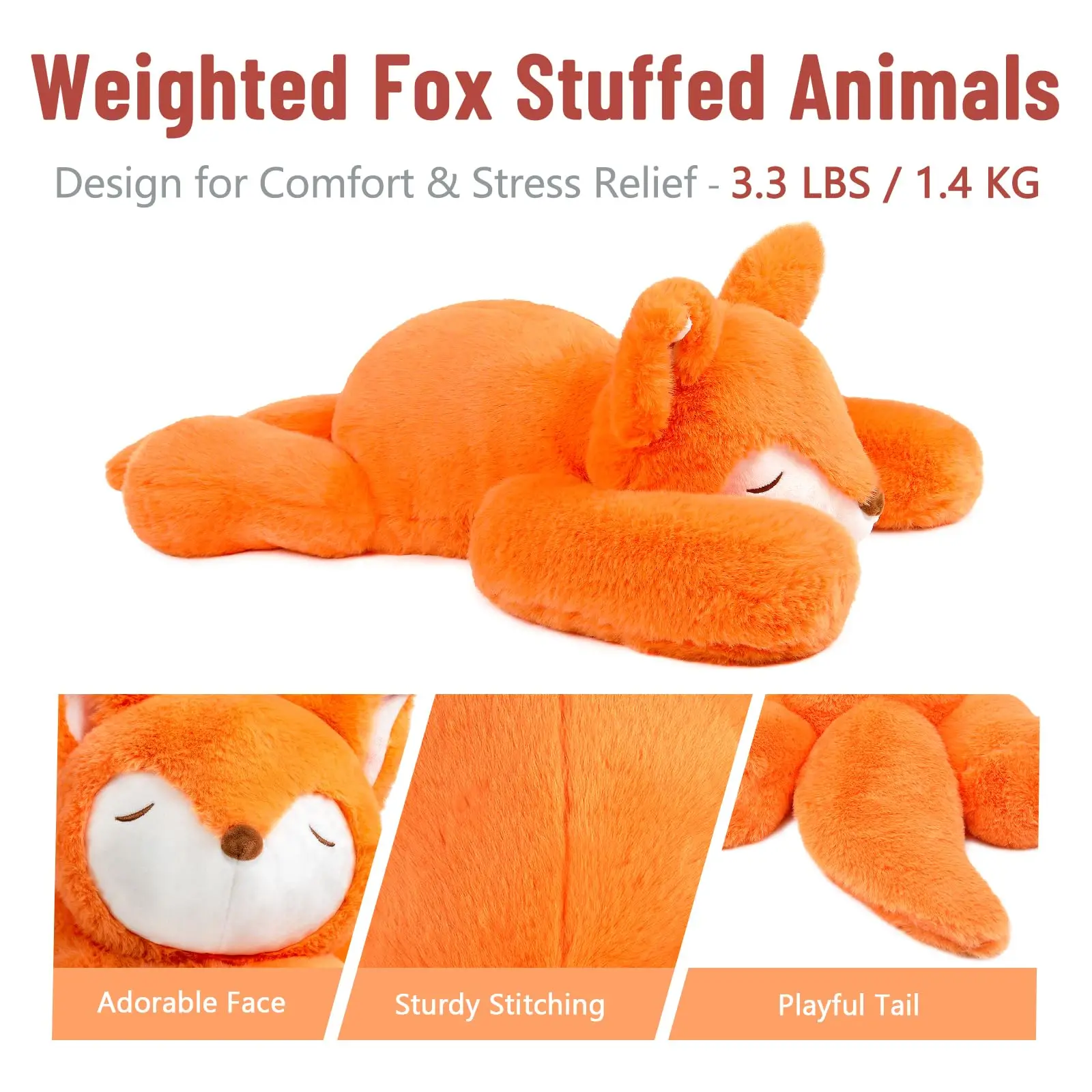 【Unique Original Design from Niuniu Daddy】Our designer designed the Weighted Stuffed Animal based on Fox. Fox Toy fluffy fur makes children or adults feel happy when play or hug with Weighted Fox Plush. This Cute Fox Stuffed Animals is a great gift for anyone in your life who loves Weighted Fox Plush or who feels stress easily and it will surely bring a smile to anyone
