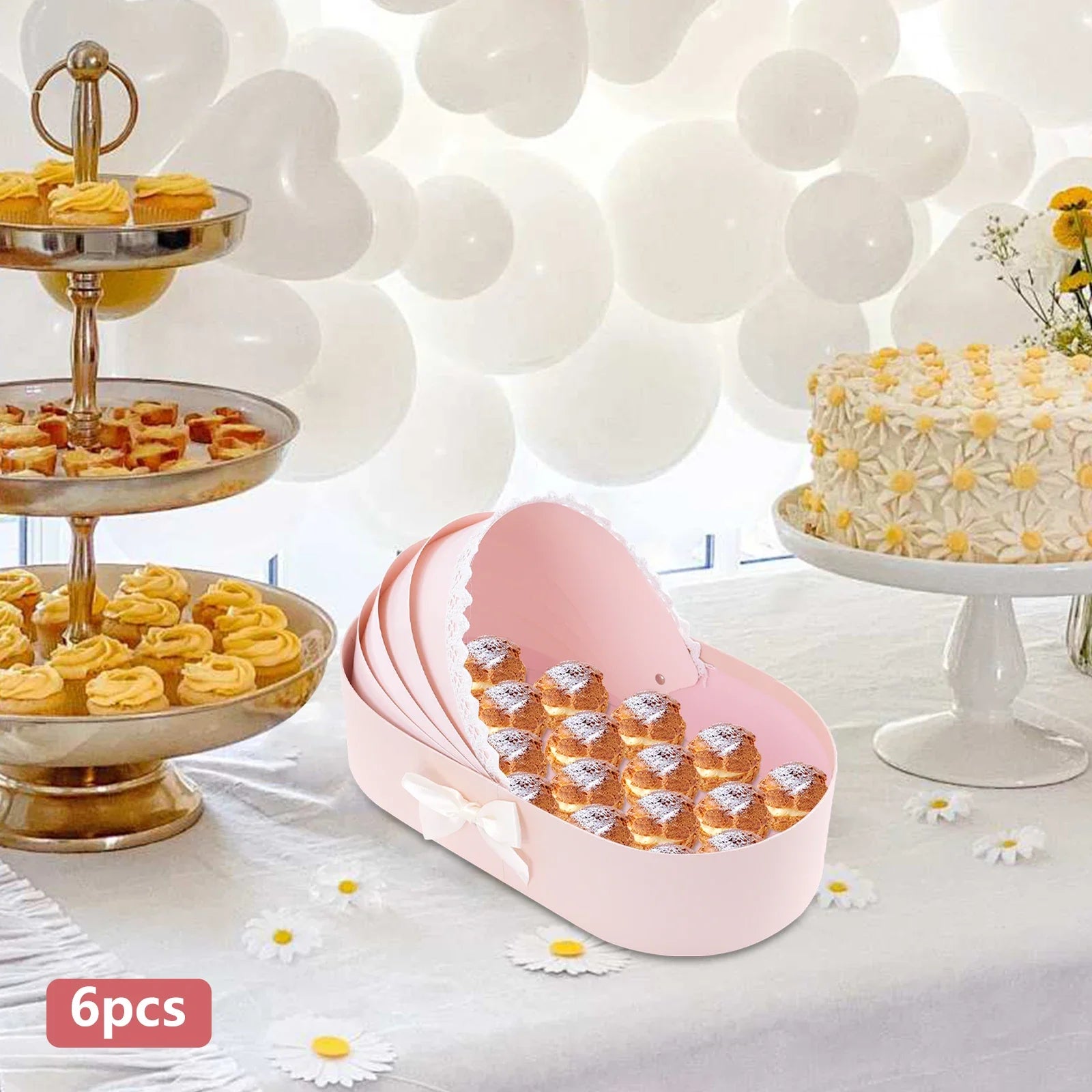 - The pink-and-white cradle design, accented with delicate lace edges and a white bow, creates a warm, romantic backdrop for your gifts.
