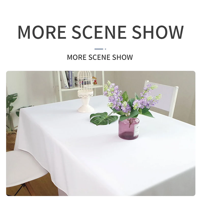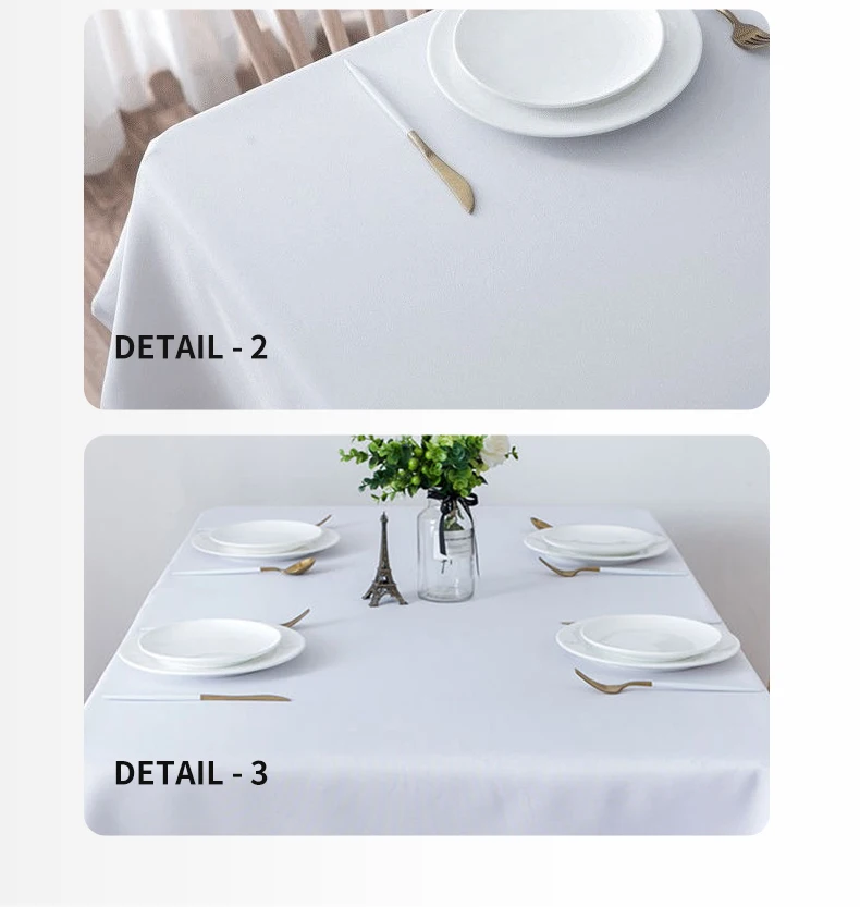 - Shape & color: Solid white, rectangle table cover that serves as a versatile backdrop for centerpieces, linens, and place settings.