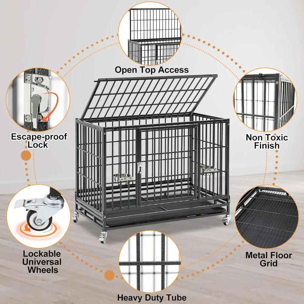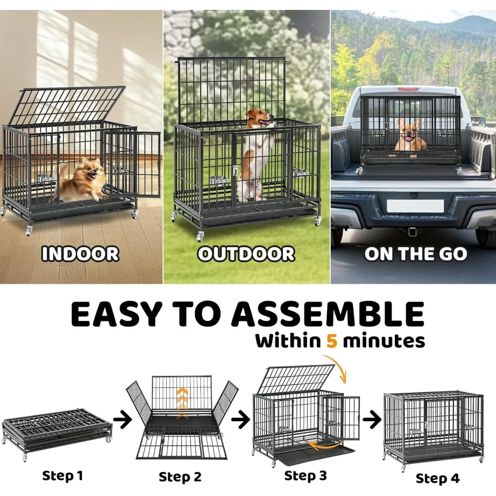 - Heavy Duty Steel with Escape-Proof Lock: Crafted with a steel tube frame and wire panel design, this indestructible heavy duty dog crate cage kennel offers great strength and durability. The crescent-shaped auto-lock prevents escapes and keeps your pet secure. Finished with a non-toxic, powder-coated surface for enhanced rust resistance and long-term protection, lasting in daily use