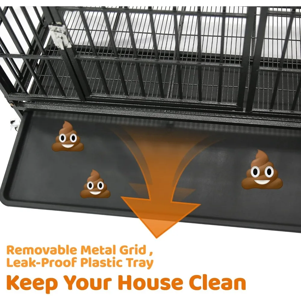 - Easy to Clean: Includes two removable metal floor grids and leak-proof tray, Grids with 0.5" spacing to protect your dog’s paws while allowing waste, food, and hair to fall through—keeping the dog cage clean and your pet elevated. The slide-out, leak-proof tray can be placed underneath or inside the drop crate for added foot protection and easy cleaning. A practical design for a cleaner, healthier pet environment