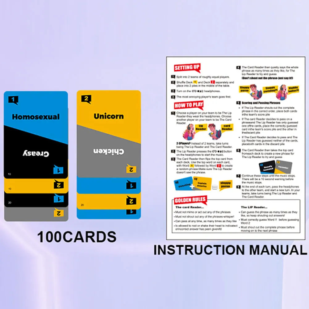 2.Uncensored Lip Reading Party Game: With the Uncensored Lip Reading Party Game, players enjoy a simple yet exhilarating experience. Just form your teams, gear up with headphones, and dive into this hilarious card game ideal for memorable nights with friends.