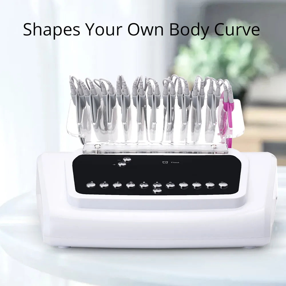 - 10-channel pulse output allows wide-area coverage and multitarget treatment across belly/waist/back/arms/butt/legs, plus targeted breast stimulation.